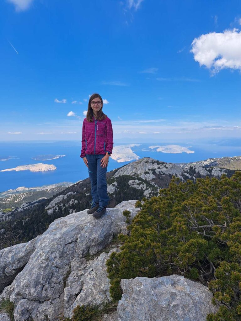 Do sada sam osvojila 52 vrha iz 16 područja RH. Najviši vrh mi je Sv. Jure na Biokovu visok 1764m. Nemam baš najdraži vrh, ali kad bih morala izdvojiti, rekla bih Fratar na Grobničkim Alpama, Žbevnica najzapadniji tisućnjak, Balinovac u Nacionalnom parku Sjeverni Velebit i Kamenjak iznad Rijeke.