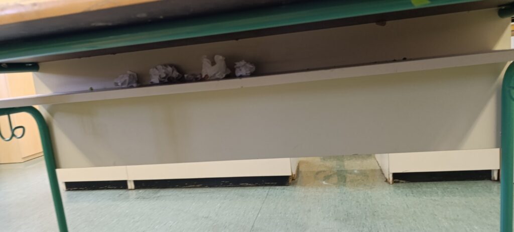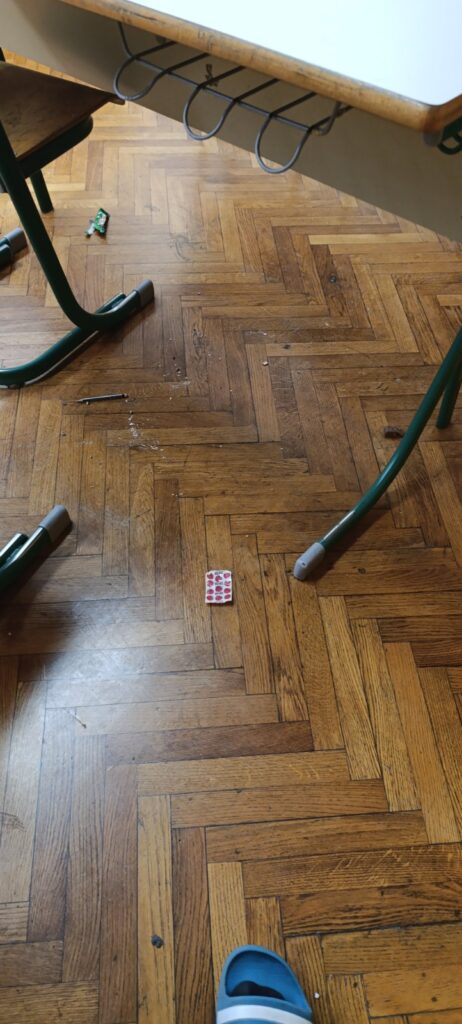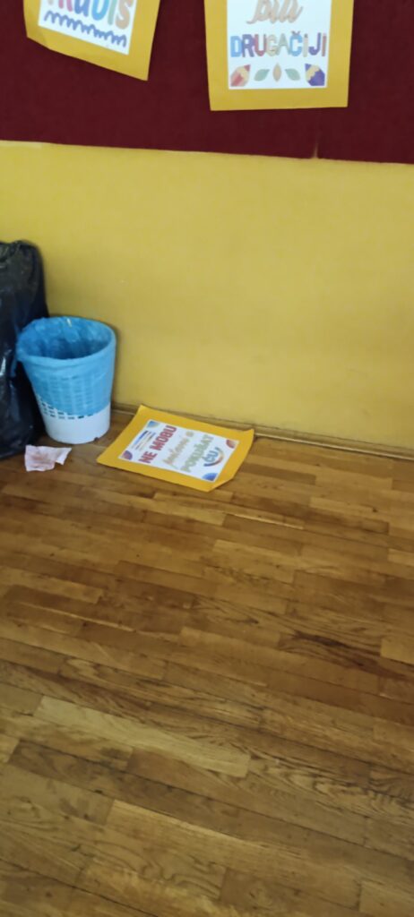 Vjerujem da smo proteklih nekoliko tjedana svi naišli na jako ružne prizore urina po podu, zalijepljenih loptica wc papira na zidovima, osjetili miris električnih cigareta u zahodima. Mnogi učenici i dalje koriste mobitele i za vrijeme nastave i pod odmorima. U kuhinji često neka djeca ostanu bez soka ili pudinga jer ih neki učenici više puta preko reda uzmu. U redu pred kioskom često stoje djeca u školskom papučama. Nakon izlaska iz učionica ostaje neuredan i nepospremljen razred. Mole se razredni redari da brinu o čistoći razreda.